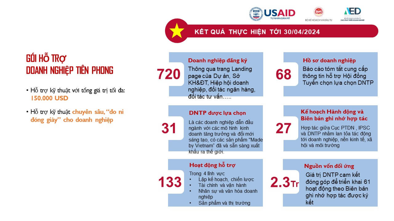 The Vietnam Pioneering Enterprises program has delivered significant results. It is expected that from 2020 to 2025, the PE program will assist 5,000 growing businesses with technical support, 240 businesses to participate in regional and international markets, along with 35 pioneering businesses receiving special support.