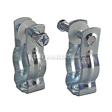 Hình mô tả kẹp treo ống thép luồn dây điện G.I vào thanh chống đa năng và sử dụng đệm vuông