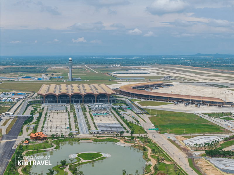 Được thiết kế bởi Foster + Partners, nhà ga sân bay kết hợp kiến trúc hiện đại với các biểu tượng văn hóa Campuchia. Sân bay còn nổi bật với các giải pháp bền vững như năng lượng mặt trời, hệ thống thu nước mưa, vườn thẳng đứng, không gian xanh trên mái và một khu vườn thực vật trung tâm, giúp giảm 20% mức tiêu thụ điện so với các sân bay thông thường. Cảnh quan với cây cọ, tượng Phật lớn và gần 200 tác phẩm điêu khắc mang đậm bản sắc Campuchia, tạo ấn tượng mạnh mẽ cho du khách.