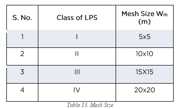 2) The mesh dimensions should not be greater than the values specified by IS/IEC 62305 part 3.
